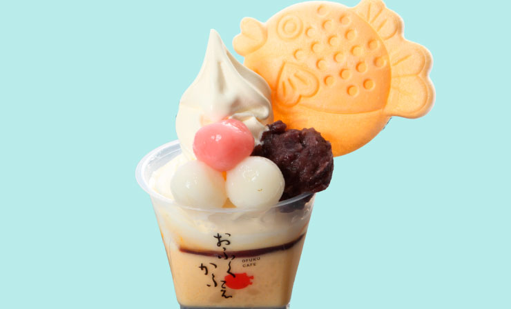 見た目も可愛い、和の魅力が詰まった特製パフェ。ふぐの最中をトッピングし、福を呼ぶ縁起の良い一品です。自家製プリンの上に濃厚ソフトクリーム、もちもち白玉、北海道産つぶあんを贅沢に添えました。和の甘味とソフトクリームの絶妙なハーモニーを、ぜひお楽しみください。